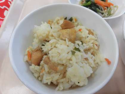 【献立】こぎつねごはん・おひたし・さつま汁・のむヨーグルト