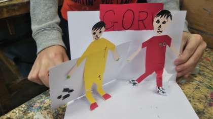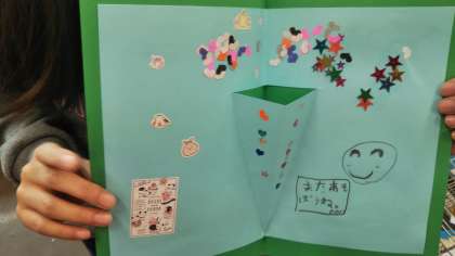 4年生は図工で『パッピーカード』を作成しています。紙を立たせる工夫や、飛び出す仕組みを使って思い思いの作品を作っています。すてきな作品が続々仕上がっています。
