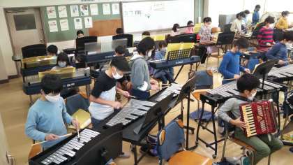 前回の「茶色の小びん」とは違う楽器に挑戦しました。途中で曲のテンポが速くなるところも上手に合奏することができるようになりました。