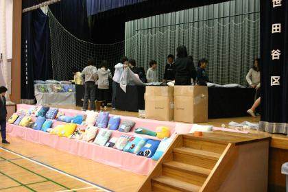 11月10日 今週の金曜日から始まる展覧会の、会場準備がいよいよ始まりました。体育館に展示用の机や卓球台などが運び込まれました。もちろん、6年生の児童が一生懸命力を貸してくれました。あと3日間で、体育館が異空間に変身します。乞う、ご期待!