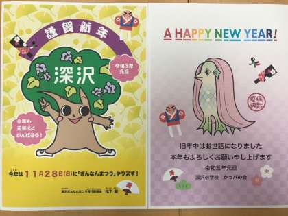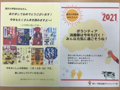 深沢小学校の教育活動に欠かせない方々から年賀状をいただきました。と言っても、年賀ハガキではなく、学級掲示用に拡大されたものです。