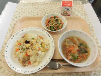 【献立】チャーハン・ナムル・白菜と春雨のスープ・牛乳
