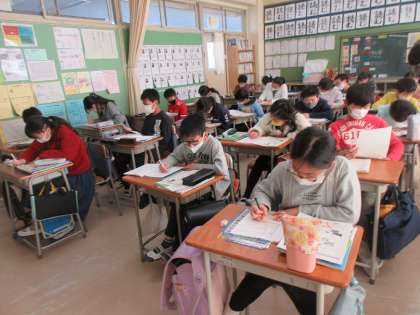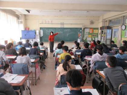 先生が撮影した動画を見たり、グラフや年表を読み取ったりしながら、コンビニの売り上げと情報管理の関連についてみんなで考えていました。活発に意見交換していました。