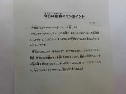 1月20日(水)の給食