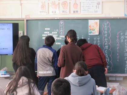 6年生の道徳の授業。今日のテーマを人を受け入れること。子どもたちは教材文を読み、もし自分だった受け入れるかどうか、自分の立場をあきらかにしながら、テーマについて話し合っていました。