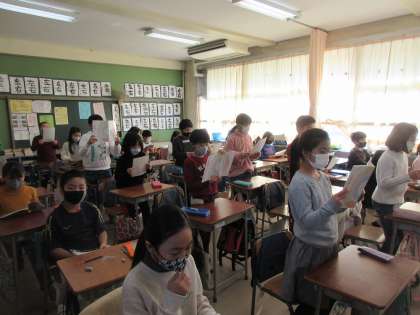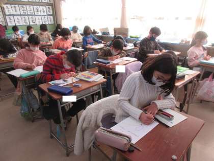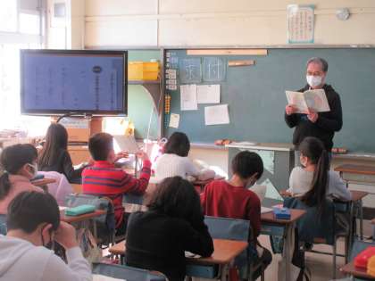 4年生は教科「日本語」で漢詩、杜牧の「山行」の学習。