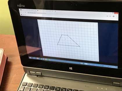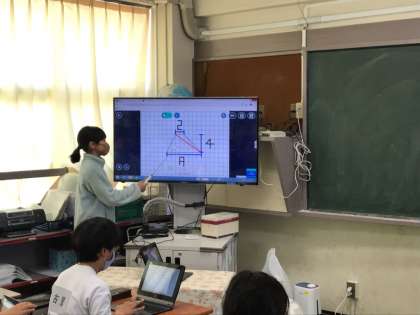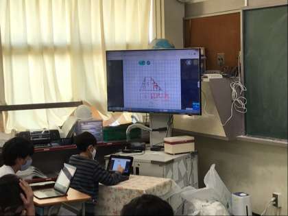 台形の面積の求め方を、今まで学習した事柄を使って考えます。今回はロイロノートを活用して、お互いの考え方を発表しました。