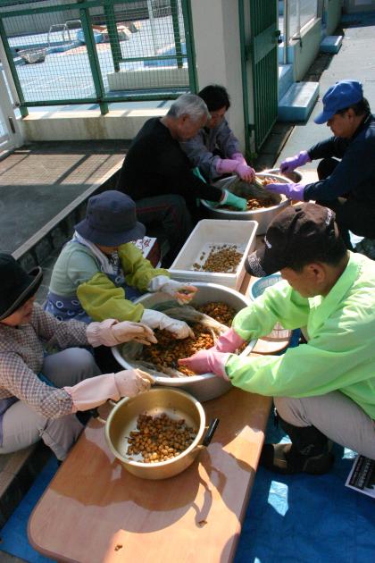 11月30日(日)に深沢小学校学校協議会主催による「深沢ぎんなんまつり」が行われます。深沢小学校を中心としたこの地域で、地域が共働して行うはじめての大きなイベントです。深沢小学校の校庭にある大イチョウにちなんで、「深沢ぎんなんまつり」としました。当日来場された方には深沢小産のぎんなんをプレゼントする予定です。深沢小学校が関係する各町会の有志の方々の協力の下、約45キロのぎんなんが処理できました。地域の皆さんと共に手作りのおまつりを目指しています。