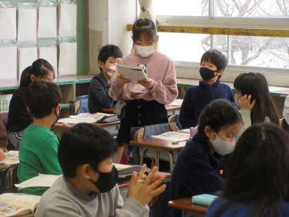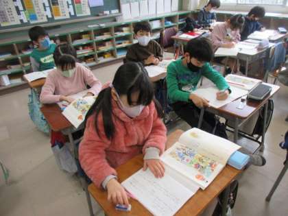 挿絵を見ながら、主語述語を決め、修飾語を使って詳しい文章を書いていました。進んで挙手するなど、意欲的に取り組んでいました。