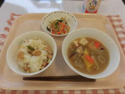 【献立】こぎつねごはん・おひたし・さつま汁・牛乳