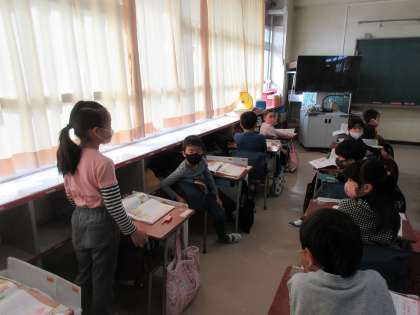 教材文を読んで、声をかけたいけれどなかなかかけられない登場人物の気持ちを想像しながら、自分の意見を進んで発表していました。