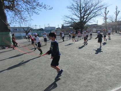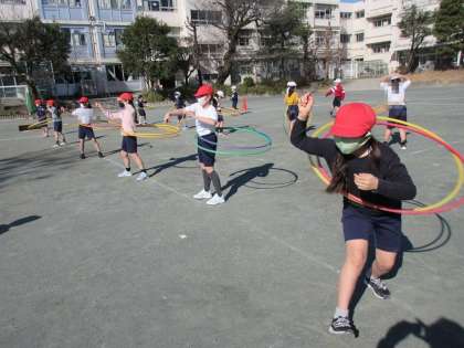 まずは校庭3週のランニング。持久走週間の取り組みです。その後なわとびとフラフープ。子どもたちが元気に楽しく運動をしていました。