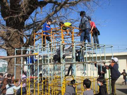 ぽかぽかと気持ちのよい昼休み。子どもたちは元気に外遊びをしています。