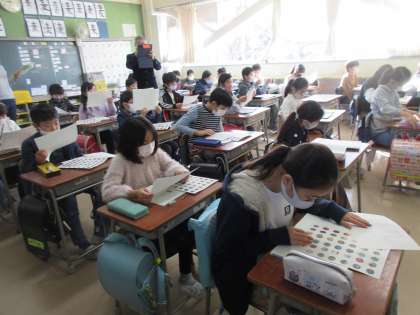 4年生が校内研究の研究授業をしました。社会科の「染め物のさかんな新宿区」の学習です。