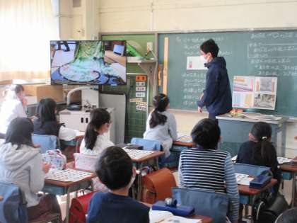 担任が提示した資料を子どもたちが読み取りながら、新宿区には染め物の伝統工芸が盛んであることを見つけていきました。写真資料が効果的に活用されていて、子どもたちは染め物についてもっと知りたいという思いをもちました。