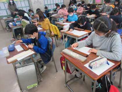 3年生がそろばんの先生である木ノ内先生をお招きしてそろばんの学習をしました。