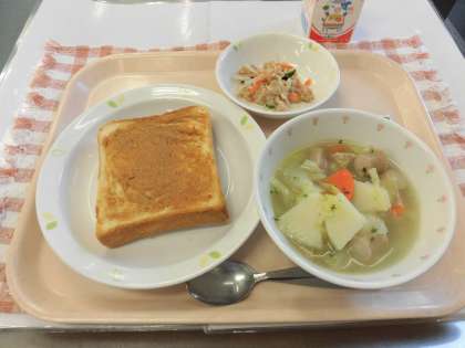 【献立】きなこバタートースト・ポトフ・もやしとツナのサラダ・牛乳