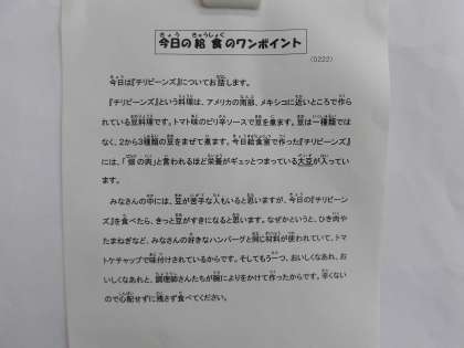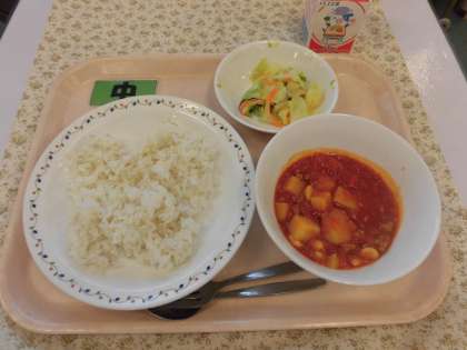 【献立】ごはん・チリビーンズ・フレンチサラダ・牛乳