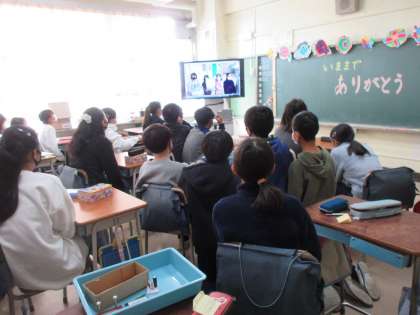 今年の6年生を送る会はズームでの開催です。各学年の出し物は動画によるものでしたが、よく工夫されていて、6年生の思いがしっかりと届いていました。6年生のうれしそうな表情が印象的でした。