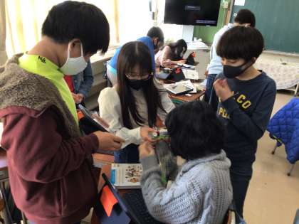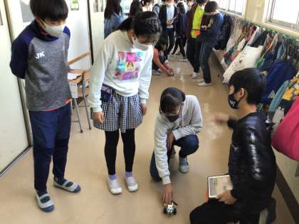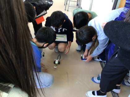 今日の理科の学習では、レゴブロックを使ってプログラミングをしました。今回プログラミングしたのは、扇風機と探査機(車)です。アイパッドのアプリ「WeDo 2.0」を使って、レゴを組み立て、プログラミングをしました。扇風機のプログラミングでは、いろいろな速さで扇風機を動かしました。探査機のプログラミングでは、指定された場所に止めるためには、どのらいの速さや時間で探査機を進ませればよいかを試行錯誤しながらプログラミングをしました。探査機を止めるために、子供たちの中で自然とで対話が生まれ協同的に学習を進めているのが印象的でした。