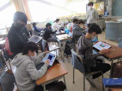 6年生の自分のタブレットで「スクラッチ」を使ってプログラミングの学習。