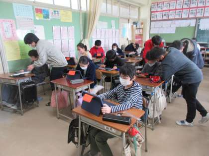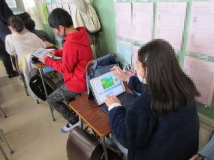 画面上の絵を意図通りに動かすために自分でプログラムを組み、絵の動きを見て自分のプログラムを確かめたり、改良したりして楽しく学習していました。