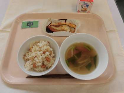 【献立】大豆とじゃこのごはん・魚のみそマヨネーズ焼き・沢煮椀・牛乳