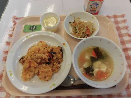 【献立】キムチチャーハン・ナムル・わかめスープ・りんごゼリー・牛乳