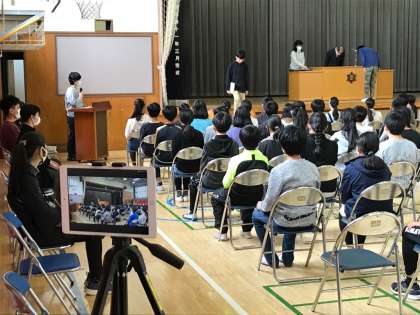 6年生と教職員で卒業式予行を行いました。zoom配信の予行もあわせて実施しました。