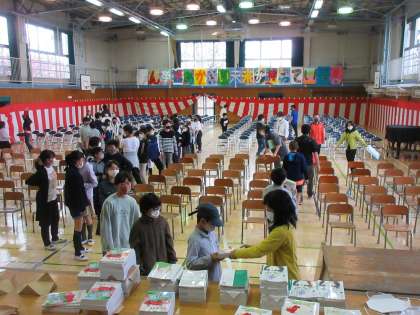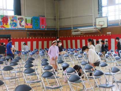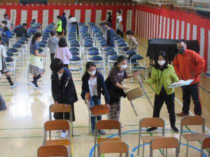体育館では入学式の会場設営をしてくれました。6年生の様子を見ていると学校の最上級生になるという気持ちが感じられました。