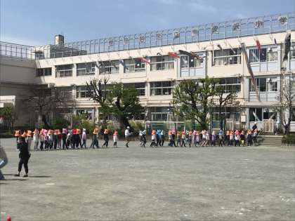 今年度初めての避難訓練は、地震を想定した訓練でした。3学年ずつ、校庭に静かに避難することができました。