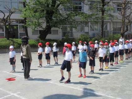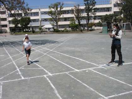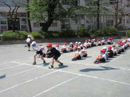 運動をするには気もちのよい天気です。2年生は運動会に向けて50m走のタイムを取っていました。友達と一緒に一生懸命走っていました。今日の体育朝会で教えてもらった整列や体育座りもしっかりとできていました。