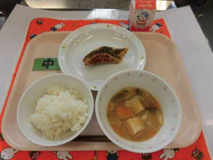 【献立】ごはん・魚の竜田揚げ・キャベツのみそ汁・牛乳