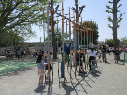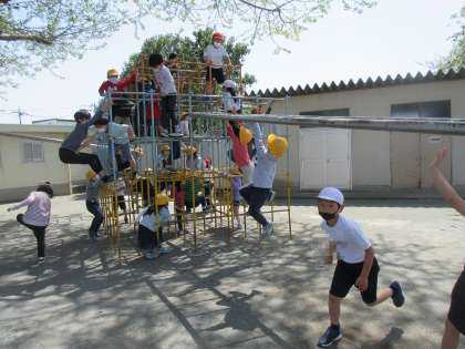 きもちのよい晴天です。1年生が今日から中休みデビューです。子どもたちは広い校庭、種類豊富な遊具で友達と楽しく遊んでいます。・