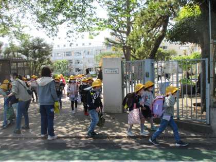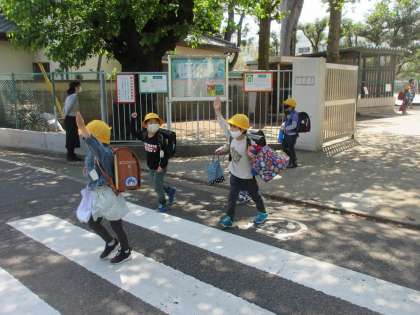1年生の集団下校は先週まで。今日からは自分の力で下校します。これまでの集団下校で学んだことを生かしながら車や自転車に気を付けて安全に下校します。