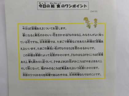 【献立】子ぎつねずし・菜種あえ・吉野汁・牛乳