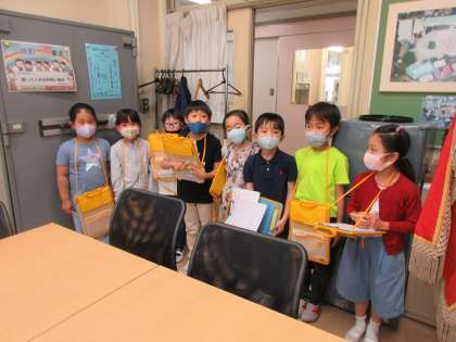 2年生が校長室を訪問してくれました。学校探検の学習で校長室を1年生に教えてあげるための下調べだそうです。子どもたちは校長室にあるものに興味津々でした。