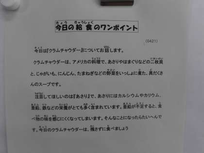 【献立】ミルクパン・クラムチャウダー・わかめサラダ・牛乳