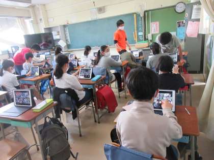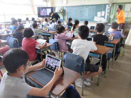 学校では有事に備えて子どもたちが自分で端末を操作してズームでミーティングや授業に参加できるように操作の仕方を学ぶ機会を作っています。