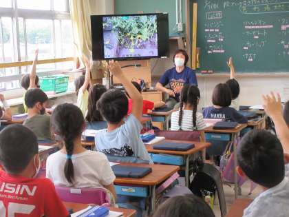 先生が校庭の植物を写真にとって子どもの端末に送信するとクリアに教室で見ることができ、子どもたちの意欲がグンとアップしました。