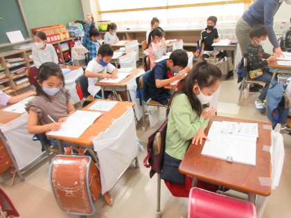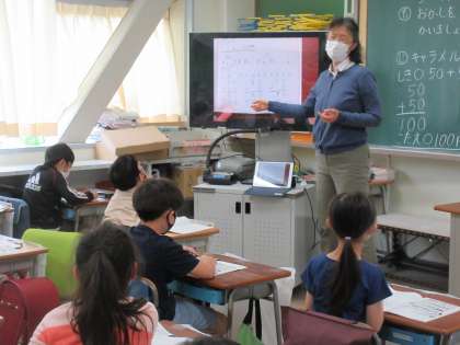 子どもたちは自分の買い物の様子を式やひっ算を使ってノートにどんどん書いていました。自分の考えをノートに書く力がついています。
