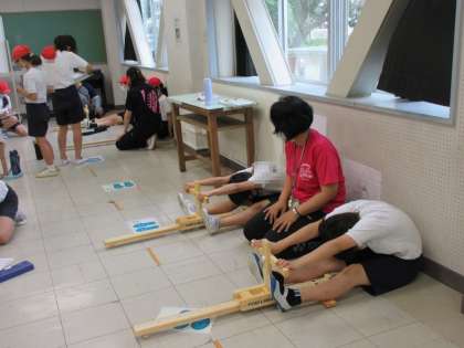 スポーツテストは全国の学校で行っています。50m走、ソフトボール投げ、立ち幅跳び、反復横跳び、長座体前屈など、さまざまな測定をします。今日は涼しく、気持ちよく行えました。