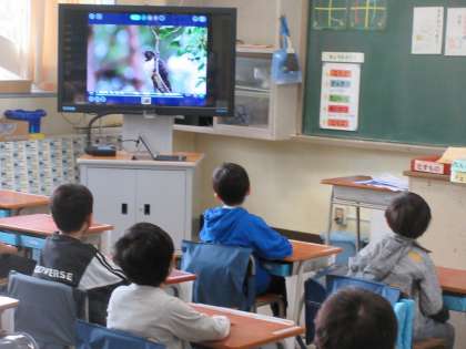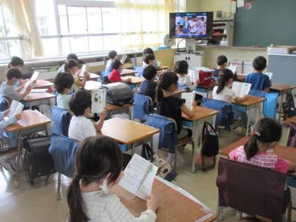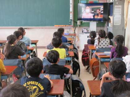 音楽朝会は「夏は来ぬ」。音楽の先生が編集した動画を使いました。音楽の授業で子どもたちは歌った動画をつないだものです。心穏やかな朝の時間となりました。