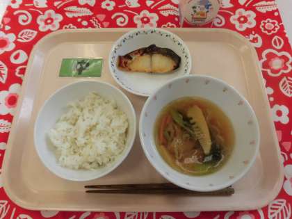 【献立】麦ごはん・さわrのみそ麹焼き・沢煮椀・牛乳