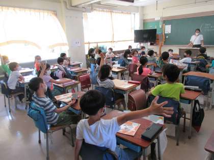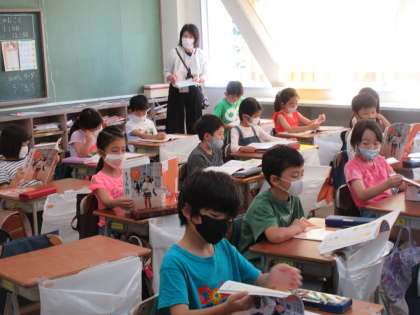 2年生の初任の担任の先生の授業を教育委員会の先生が参観しました。授業後には直誠つ指導をしていただきました。新人教員は学校と教育委員会が連携しながら育成していきます。