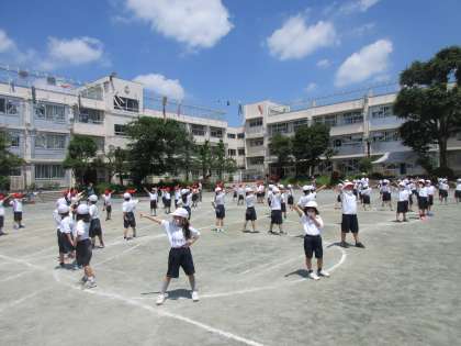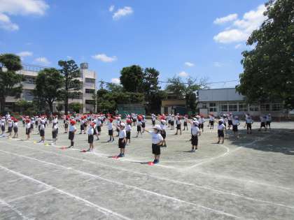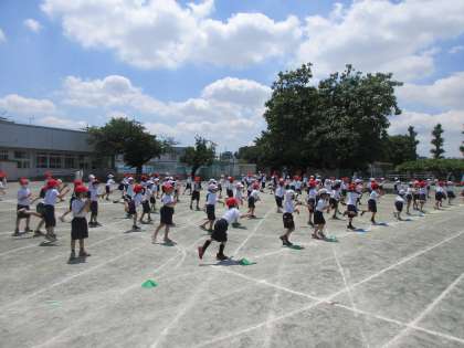 1年生は忍者に変身。隊形移動にもチャレンジ。本番に向けて一生懸命練習しています。