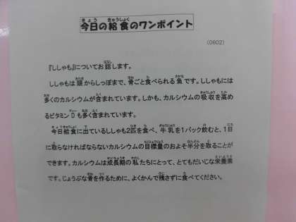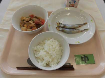 【献立】ごはん・焼きししゃも・豆入り筑前煮・牛乳
