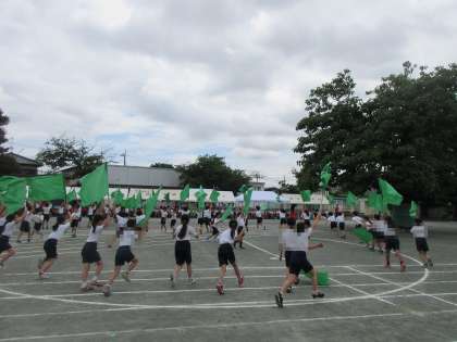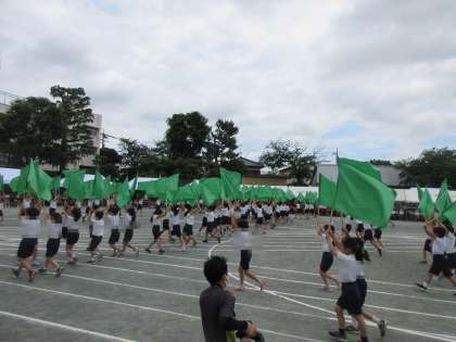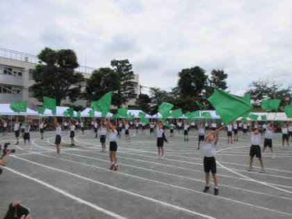 3年生はおおきなフラッグを体全体を使って元気のよい演技ができました。笑顔がとっても素敵な3年生でした。