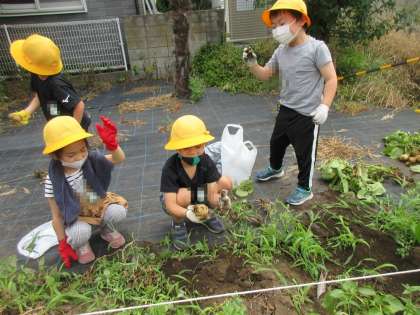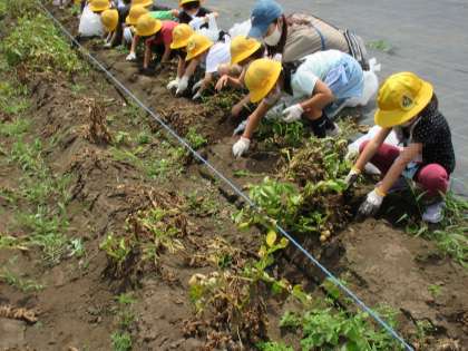 今日は1年生がじゃがいもほりです。自分の手で土を掘って、大小さまざまなじゃがいもを収穫できました。