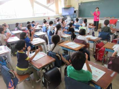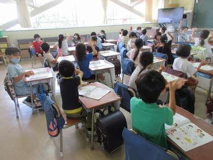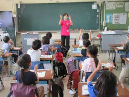 手拍子でリズム遊びをしていました。手拍子の合わせて名前を読んで答えたり、先生や友達とじゃんけんをしたりと楽しく学習していました。